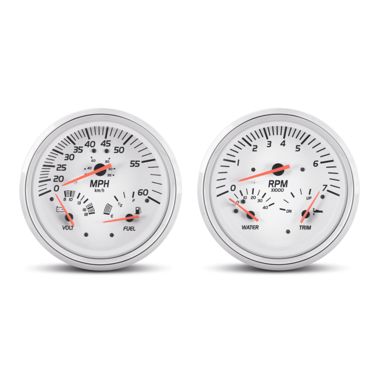 A multi-function boat gauge combines several data points like, RPM, fuel level, trim, and voltage into one display, saving space and simplifying your dashboard. Gauge sets can be a collection of single gauges