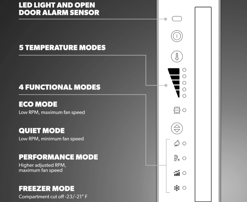 Fresh design, superior energy efficiency: this smart compressor refrigerator provides 78 l of cool storage. Its elegant frameless door, integrating a stainless steel front panel and a convenient full-width handle, opens to a versatile interior. You can easily remove the 6.1 l freezer compartment to use the full cabinet capacity for refrigeration or one-star conservation (*) and keep frozen food for a few days. Frame not included.